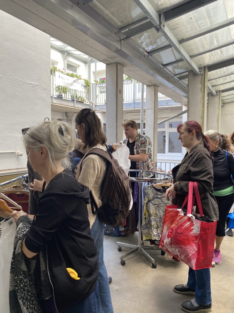Hier könnt ihr gut erhaltene Kleidung, Schuhe und Accessoires tauschen! Bitte bringt maximal 15 Teile mit, am Besten nur welche, die zur aktuellen Jahreszeit passen. Annahmestopp ist um 15:30 Uhr, dann kann noch bis 16 Uhr gestöbert werden.